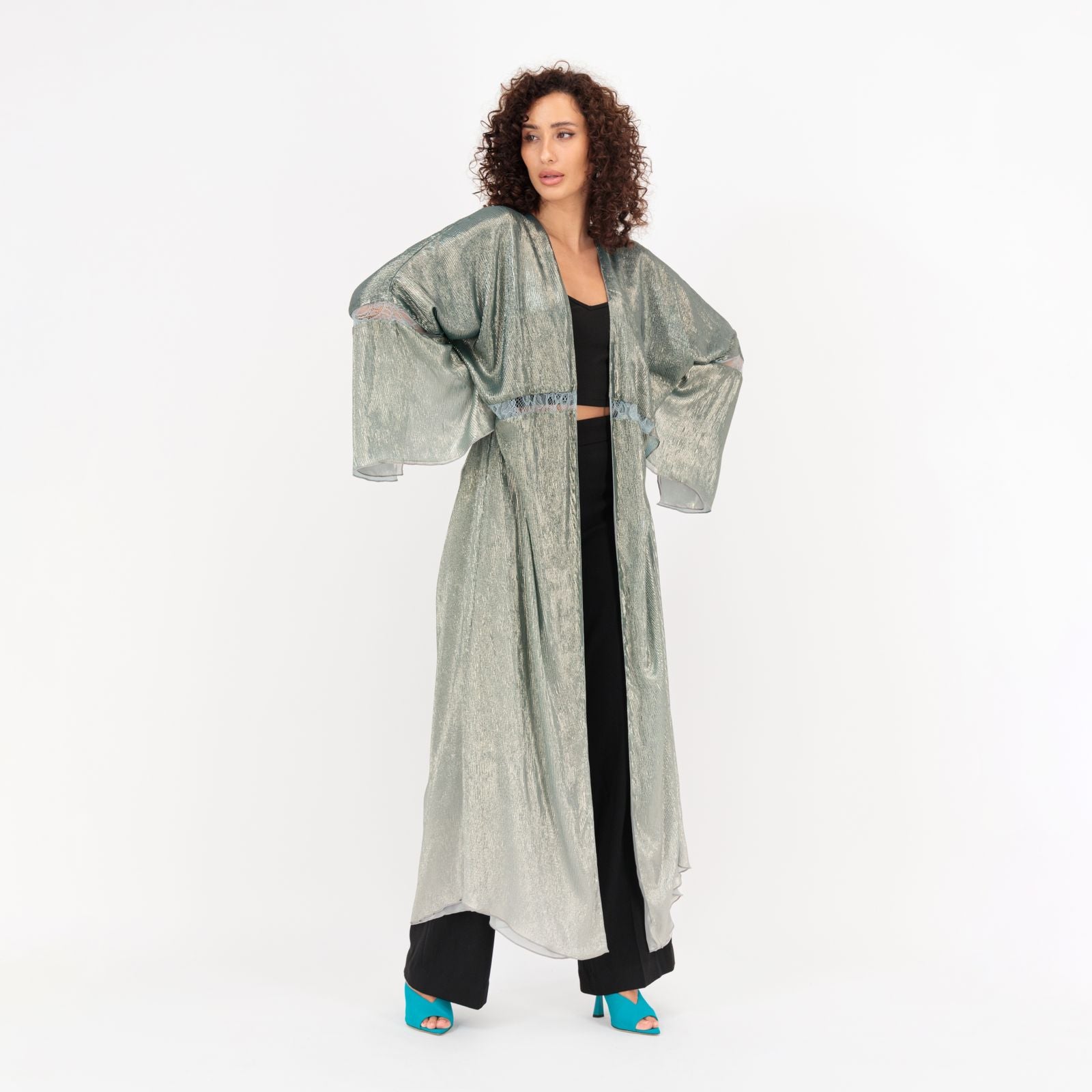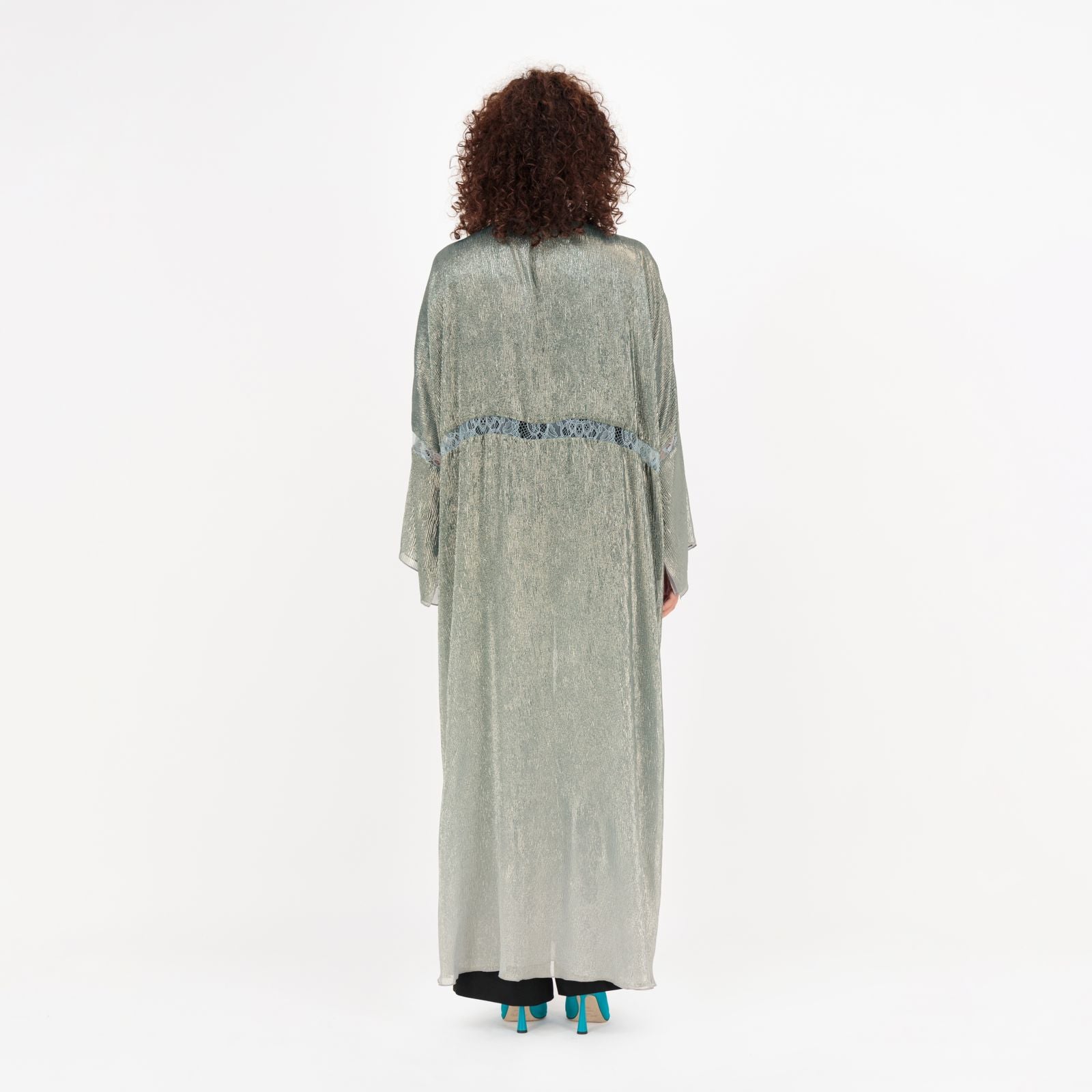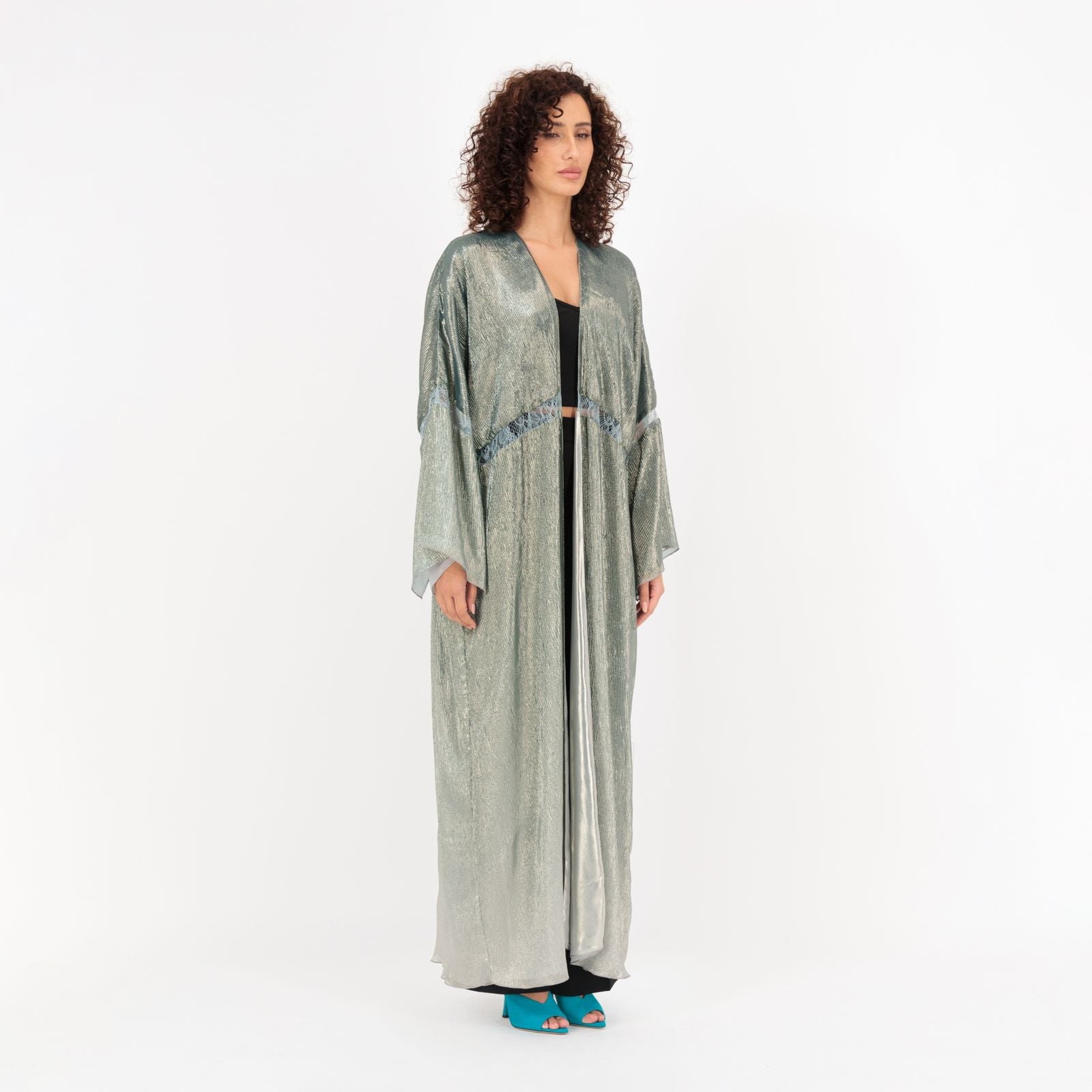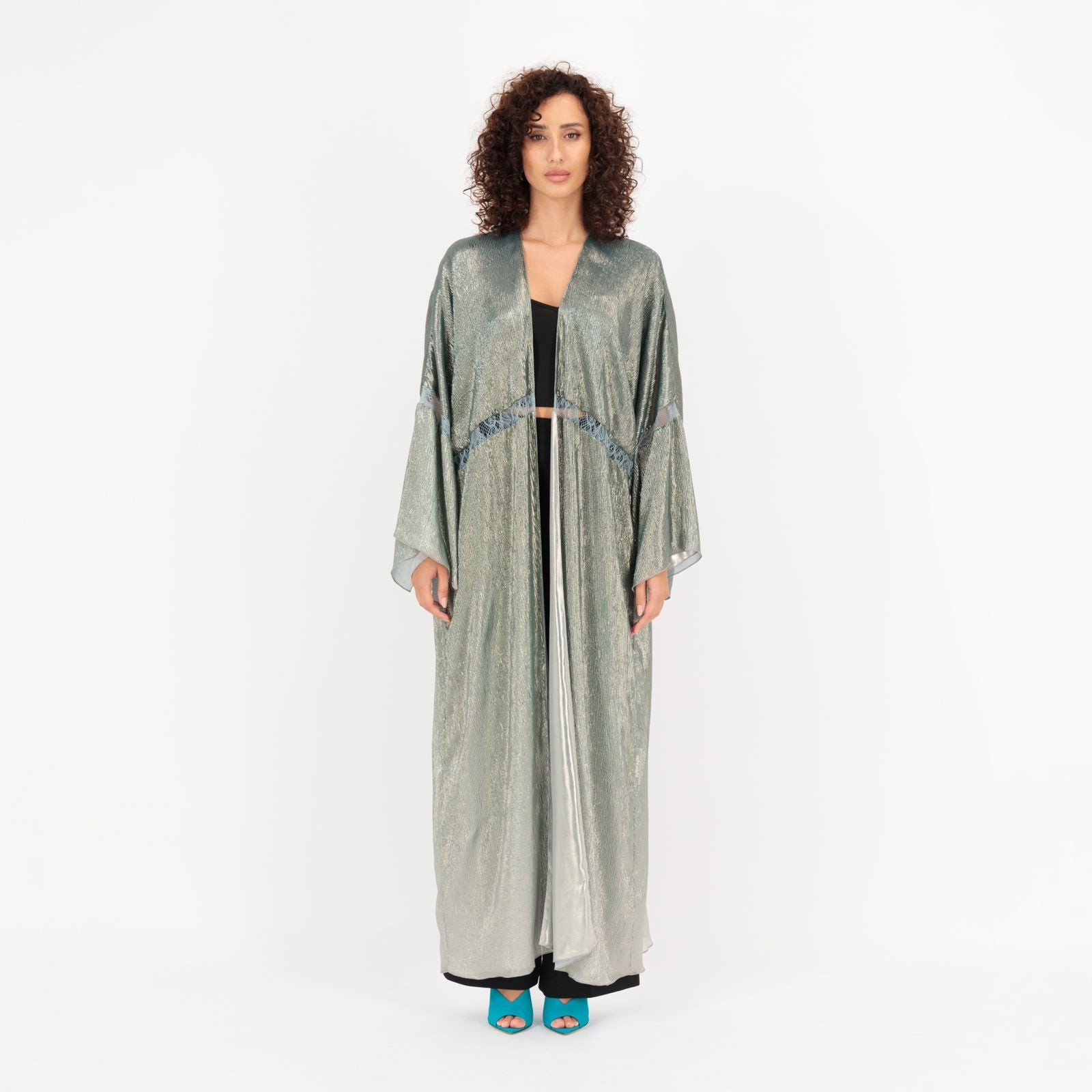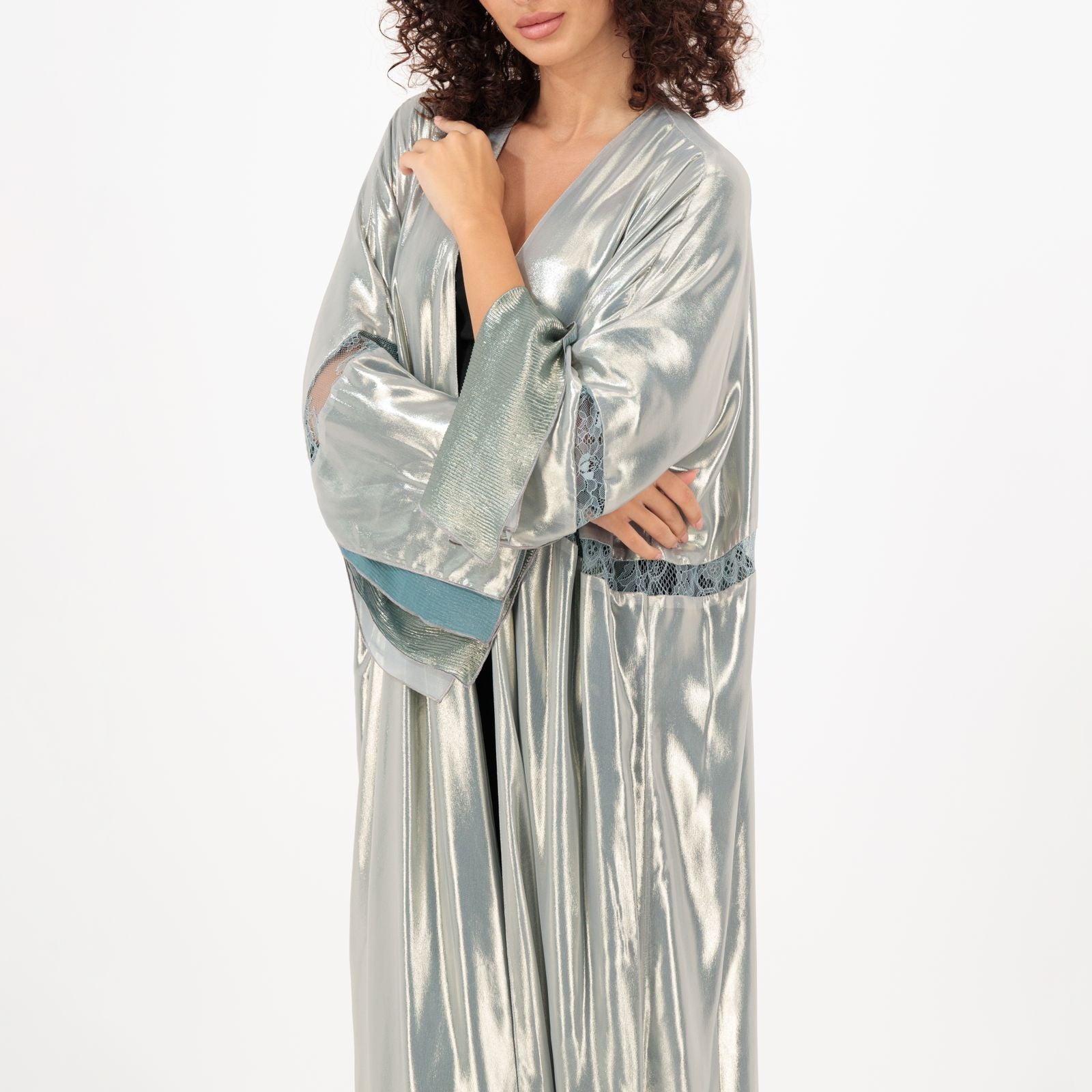 Metallic is still on trend, and this abaya has the perfect shine that sparkles with every movement. made of double layer chiffon that can be worn both sides.